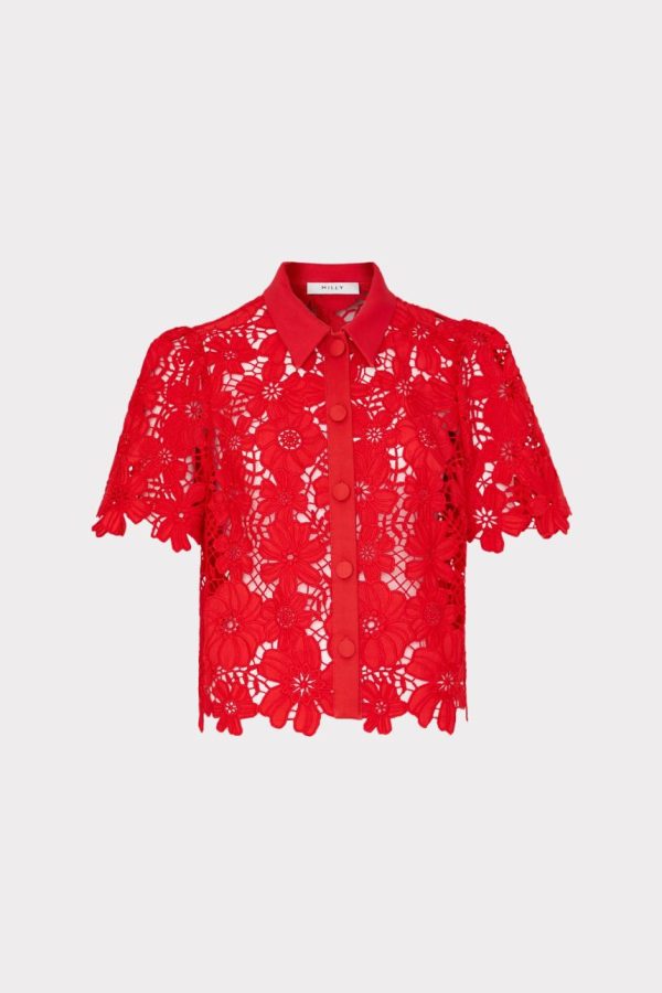 Addison Roja Lace Top In Red | Women Milly Work