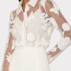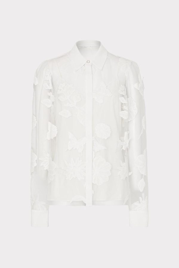 The Ashton collared button-down is patterned with our signature 3D butterfly and floral embroidery that serves as an overlay to a solid white camisole. Tuck it into your favorite MILLY pants and skirts.