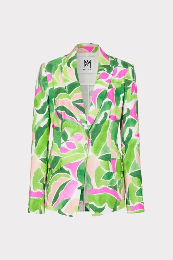 Our classic blazer is back for Spring in our new summery Painted Bloom print. It’s cut from our easy stretch linen, is darted for shape, and has a single button that draws in the waist. Wear it with its coordinating Painted Bloom Linen Short.