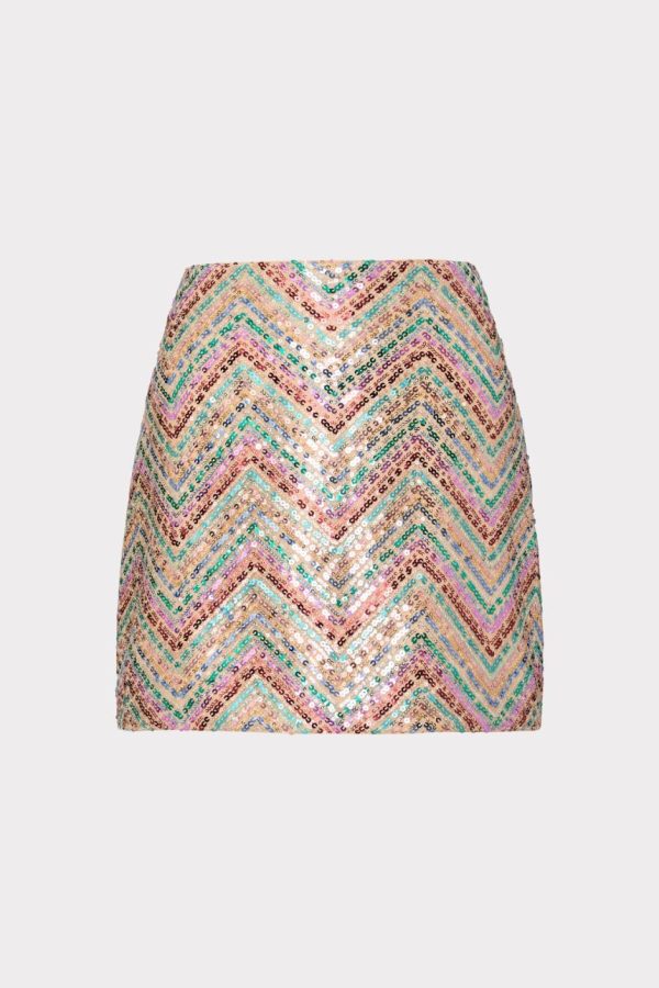 Turn heads at your next all-night dance party with sparkly layers of multicolored sequins that are intricately placed into a chevron stripe pattern throughout. For the full look, pair it with its coordinating sequin chevron striped crop top.