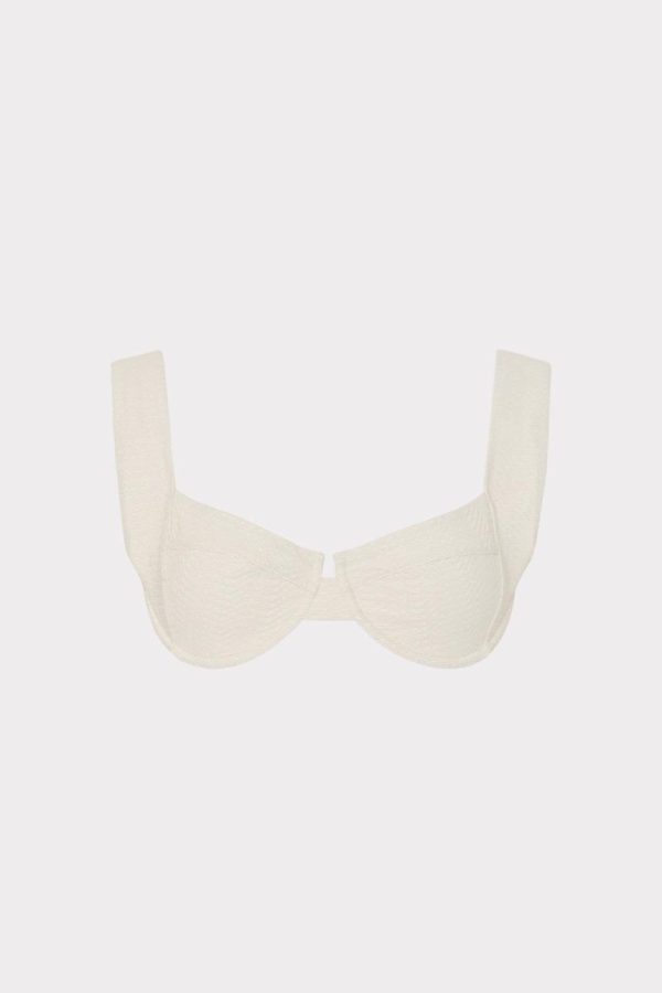 Made from our luxe textured chevron with lurex detail, this classic underwire bikini style is made to give you a lift. It has chic wide straps and a clasp in the back to close. Wear it with its coordinating chevron bikini bottoms and your favorite MILLY cover-up.