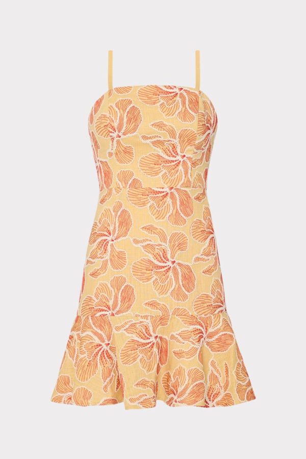 Rendered from our luxurious linen fabric, this fitted mini dress falls to a flirty, ruffle skirt and features a feminine floral embroidery throughout. It’s finished with a zipper at the back to close.