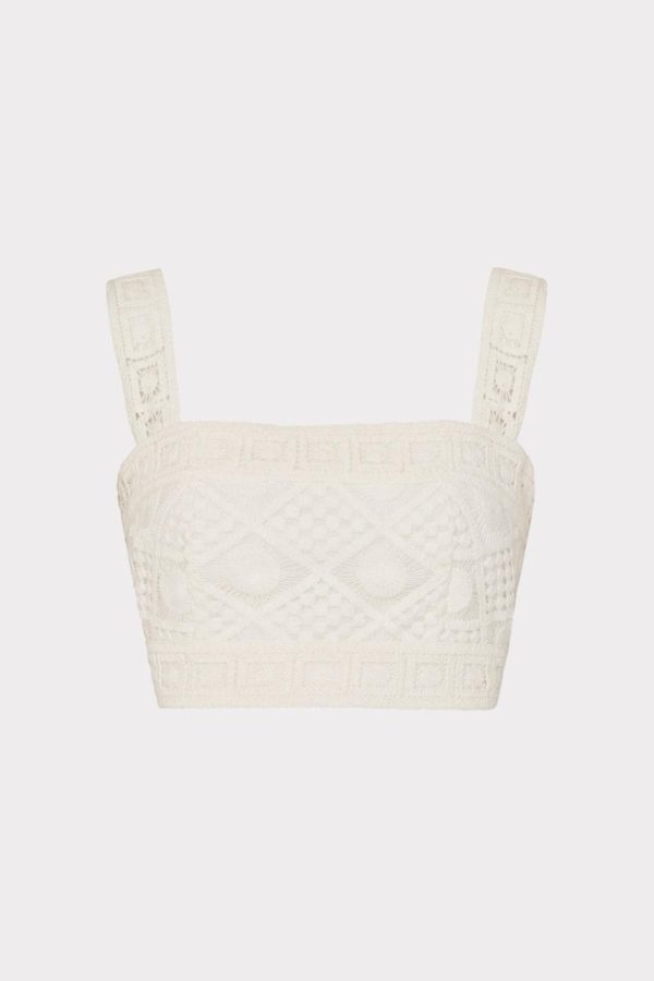 Calling all crochet lovers. A diamond pattern is woven into this 100% cotton lined crop top with a crochet overlay. It’s soft, summery, and fitted with a back zip closure. Wear it with its coordinating Diamond Crochet Midi Skirt.