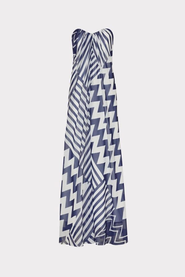 Erin Patchwork Chevron Maxi Dress In Blue/White | Women Milly Maxi Dresses