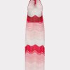In a wave of graduating pink hues, this halter neck dress uses an open knitwork technique to create a semi-sheer effect—ideal for a swimsuit coverup. It has a low back, side slits above the knees. Wear it over your favorite Milly swimsuit.