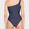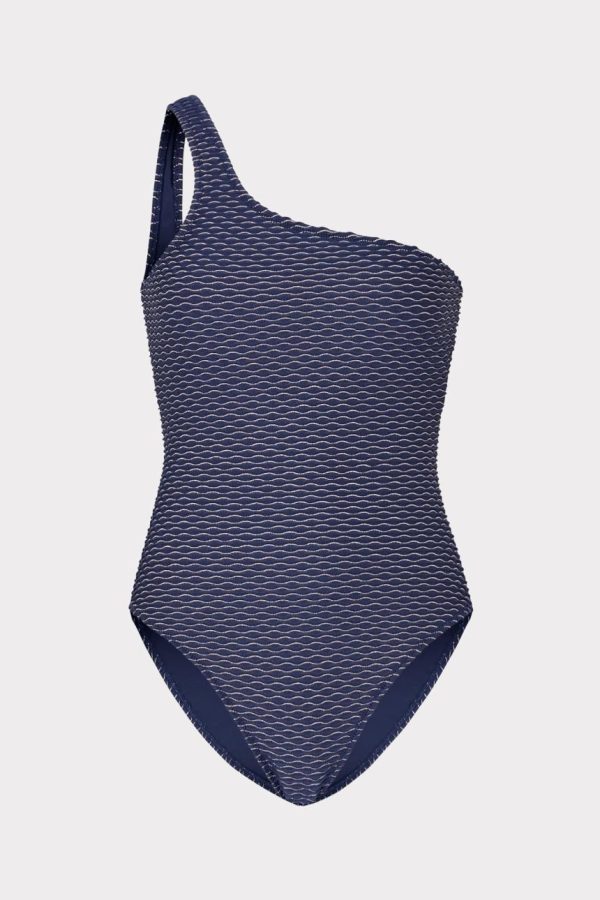 This simple, but stunning one-piece swimsuit is designed with a chic, one-shoulder silhouette. Made from our signature Italian sustainable swim fabric that’s done in our new-for-the-season textured wave fabric, woven with gold lurex detail throughout. It features built-in, yet removable cups and provides medium brief coverage.