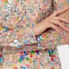 Perfect for your next cocktail party, the Leona minidress is covered with an overlay of 3D confetti-colored sequins and is finished with a feminine, scalloped hem. Style yours with a neutral ankle strap heel.