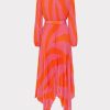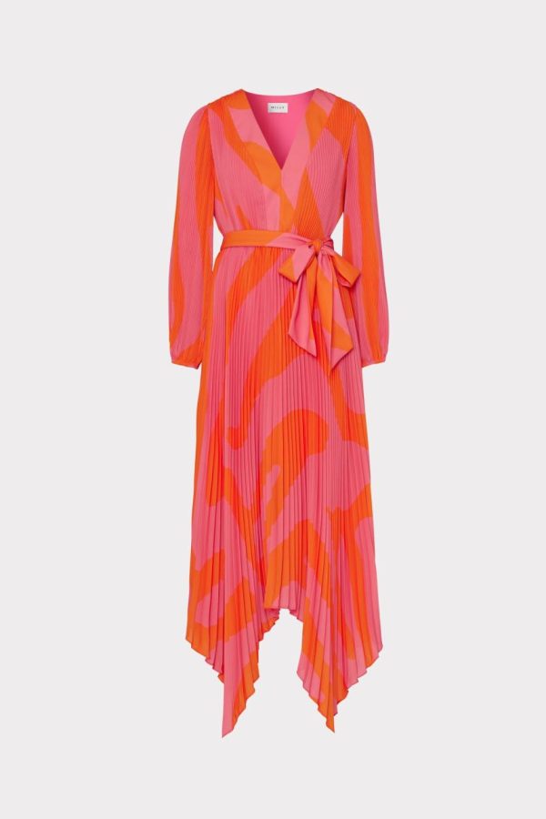 Liora Zebra Print Pleated Long Sleeve Midi Dress In Pink | Women Milly Pink Dresses