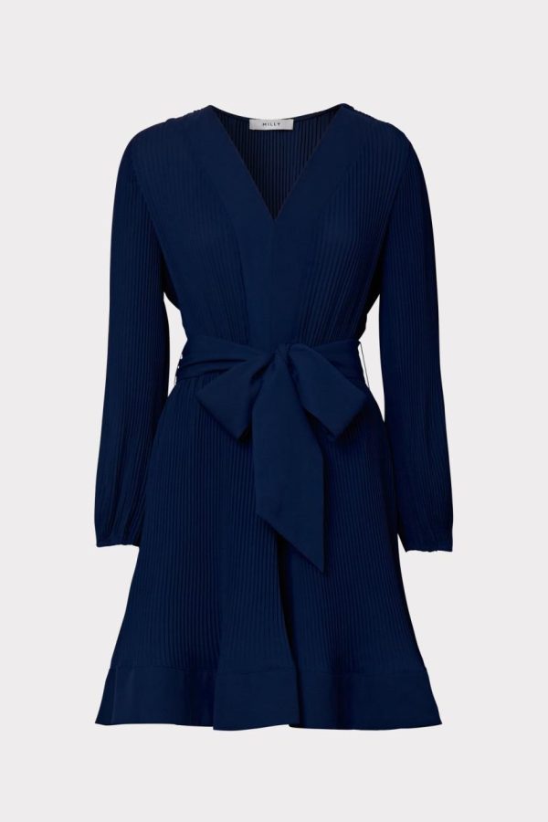 Liv Pleated Mini Dress In Navy | Women Milly Cocktail Dresses