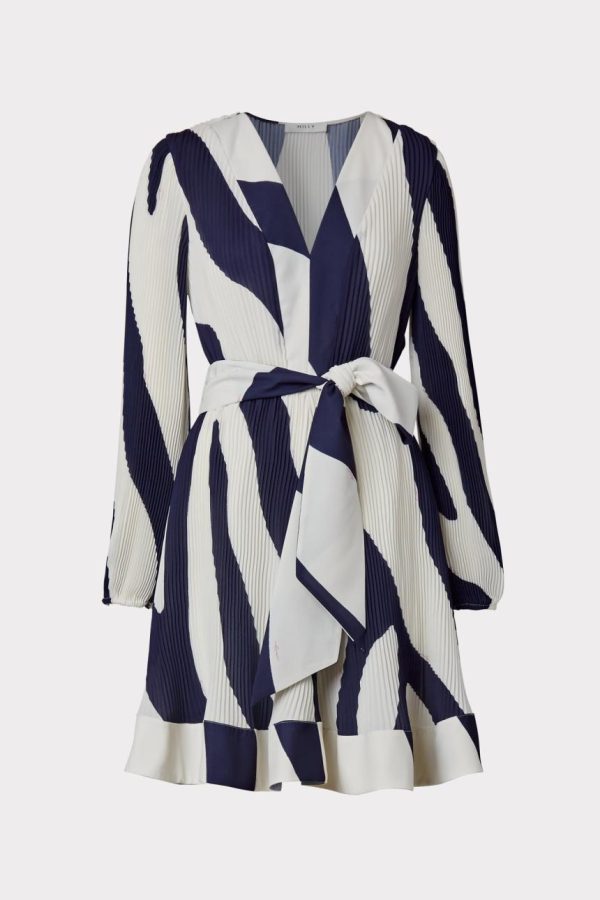 This easy-to-wear pleated short dress features a slim long sleeve, a v-neckline, a MILLY signature pleated skirt, and a tie at the waist for added shape. For the Spring season, it comes in our MILLY signature zebra print.