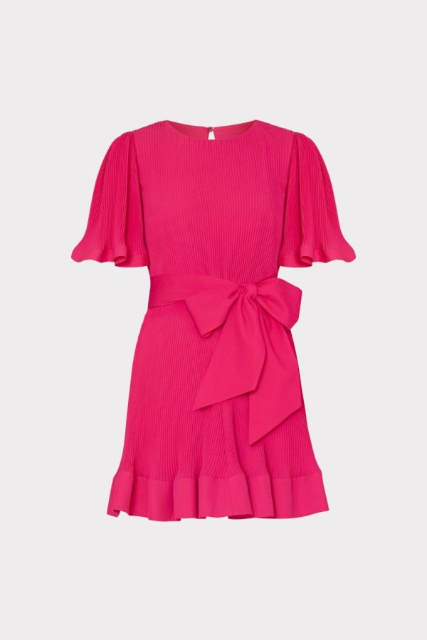 Lumi Short Sleeve Pleated Mini Dress In Pink | Women Milly Pink Dresses