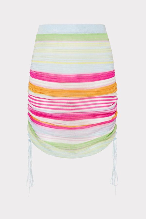 Meant to be worn over swimwear, this lightweight, semi-sheer cover-up skirt features vibrant, sporty stripes throughout. Plus, you can adjust the ties on each side to create ruching—allowing for the length of your choice.