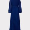 Nadie Long Sleeve Pleated Maxi Dress In Navy | Women Milly Special Event