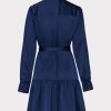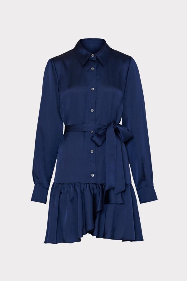 Noah Satin Long Sleeve Ruffled Midi Dress In Navy | Women Milly Mini Dresses
