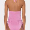 - Plunge halter neckline with tie closure