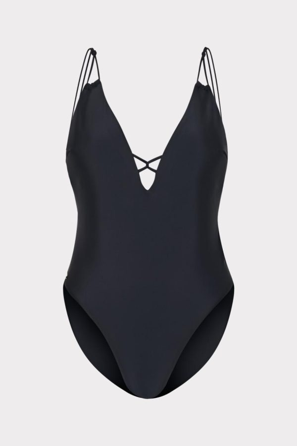 This one-piece is made using a unique, Carvico Vita recycled swim material. It’s a high-performance fabric that’s engineered to be ultra chlorine and sunblock resistant while providing UV protection—plus, it offers a highly flattering blend of muscle compression, extra stretchiness, and comfort. It features a double strap silhouette with a plunge neckline with cross-cross detail, and a low back with a self tie.