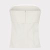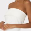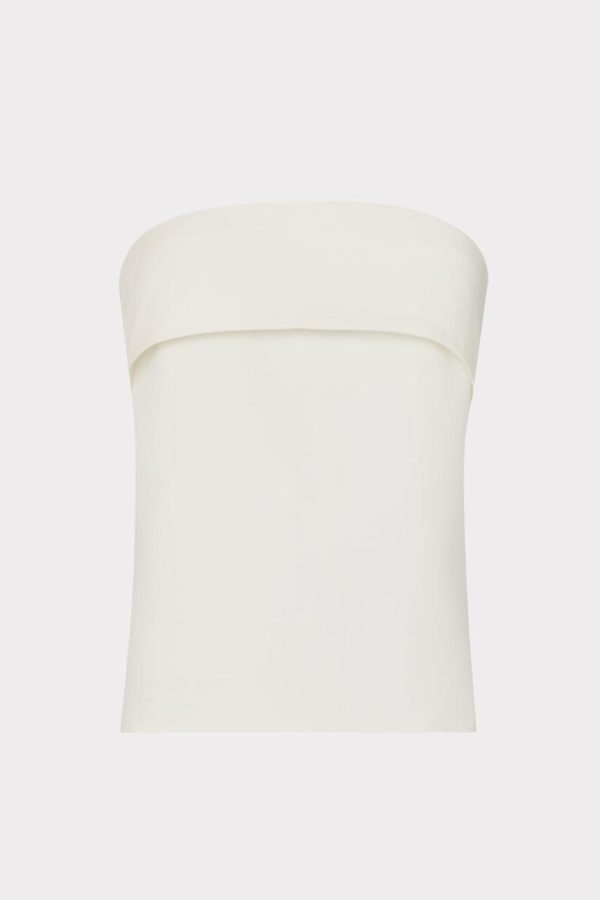 If you’re headed to a warmer climate this winter, our Tuala cady top is a must pack. Across the strapless neckline is a chic overlay. It’s fitted throughout the bodice with side slits at the hemline. For an easy monochromatic look, style it with any pair of our MILLY cady pants.