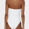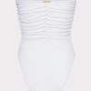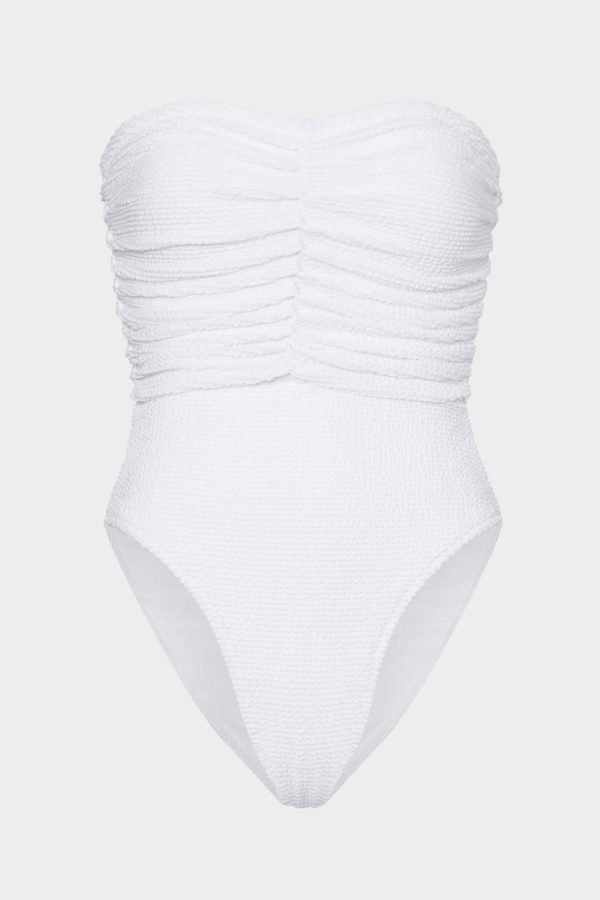 If bandeau is your go-to silhouette, don’t miss this absolutely perfect one-piece. It’s ruched throughout to create an elongating and more forgiving look. And it’s cut from our unique, sustainable textured swim fabric. It comes in neon pink and white.