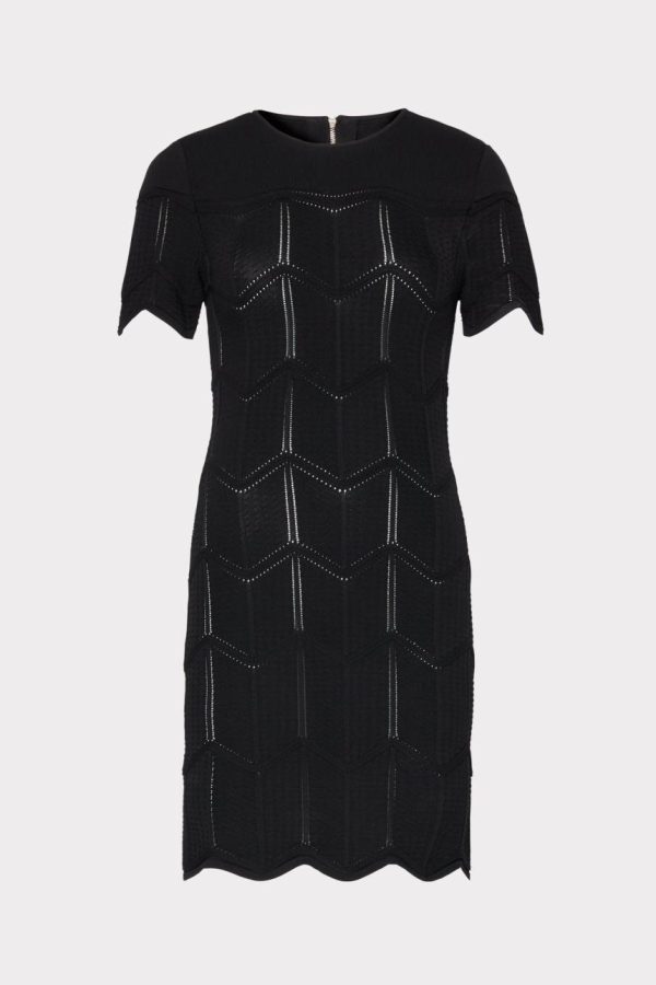 Every season, Milly offers an updated take on our iconic luxe knit dresses. For Resort, this short dress version features a pointelle zigzag design throughout as well as a zigzag edging on the sleeves and hemline. Style yours with a pair of ankle strap heels.